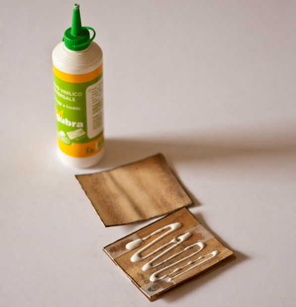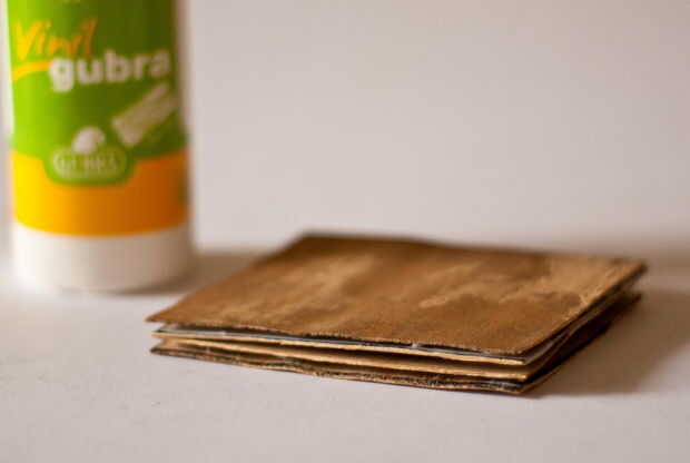 Fijar con cola de vinilo las otras dos piezas rectangulares en los lados externos de los dos primeros tableros. Luego poner todo bajo un peso, son buenos algunos libros pesados.
