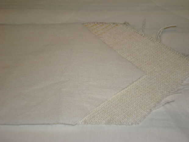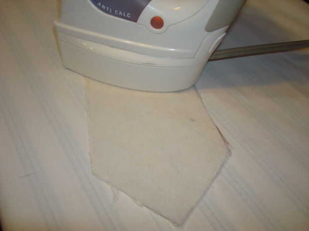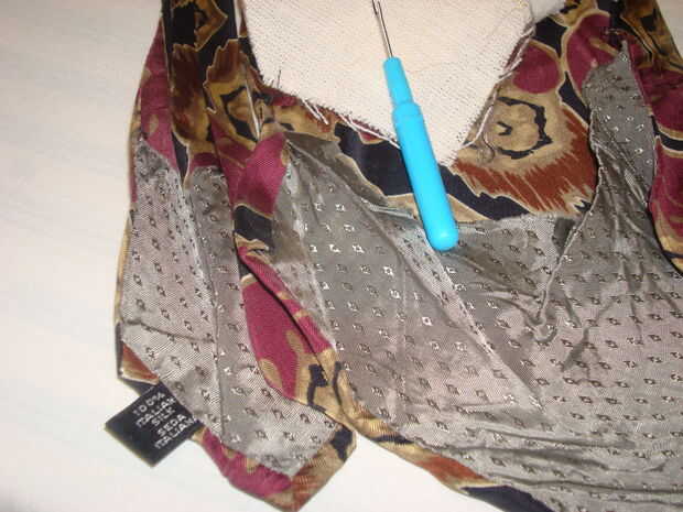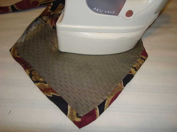 Coloque el lado desigual de los paramentos entre sobre la entretela corbata y prensa. utilicé el ajuste de seda en mi plancha.