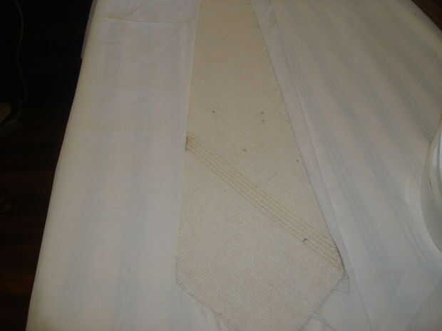 Presione la parte más grande de la tela de la corbata con las líneas de prensado original como guía. Hice el error de presionar la sección entera y descubrió que debo haber presionado el lazo con las líneas originales.