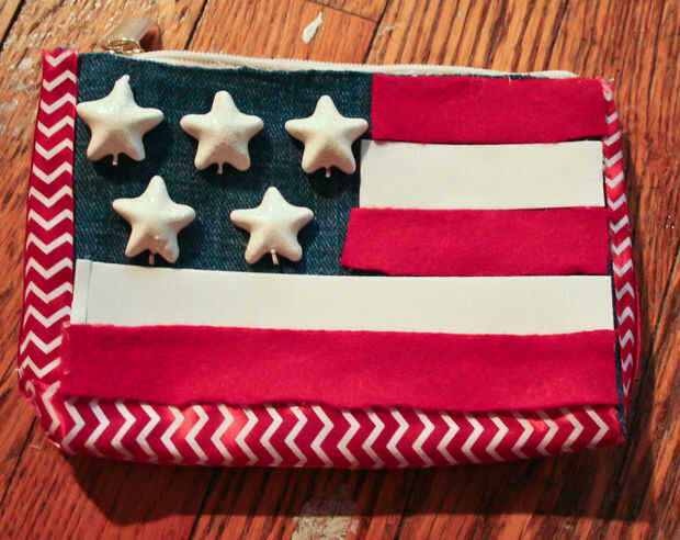 Pro Tip: Si no juego en trabajar con los elementos utilizados, también se puede utilizar una plantilla en forma de estrella, tela y cinta de pintor pintan y pintan la bandera americana en el jean. Obviamente se quedó sin tiempo para mostrarte esta parte, además no tengo pintura de tela para mostrar. Sin embargo, la idea con este. Si usted decide hacer esto, sin embargo, simplemente pintar la bandera americana con pintura de tela derecha en su jean.