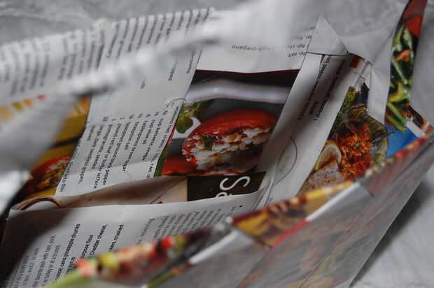 tienen un montón de revistas (o periódicos) alrededor de... ¿y no está seguro de qué hacer con ellos? Hacer un regalo bolso tejido! Este fue un proyecto bastante fácil que me costó cero dólares, pero unas pocas horas en el tiempo.Materiales necesario
