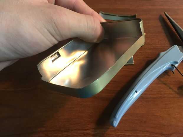 * Asegúrese de que no se corte demasiado lejos abajo en la bandeja, o en otro el estaño no será más grande para tirar fuera de la cubierta. También, tenga cuidado al cortar la lata y trate de no cortarse con la lata (hice :/)