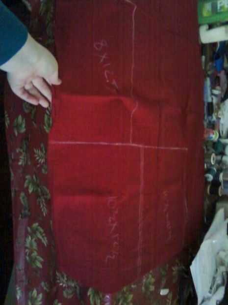 Con el patio lleno de tela marca 2 rectángulos de 10,5 "x 12,5" y un rectángulo de 8 "x 10,5"