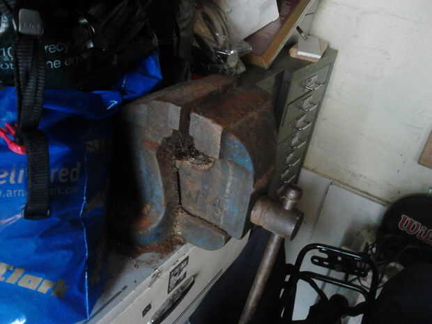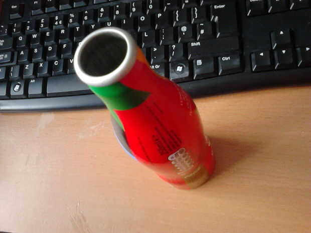 Con mi trozo de papel entre ambos lados del cuello y el vice, gradualmente ajusté el vicio hasta que pude sentir el cuello de la botella formando en forma - comprobar cada tan a menudo con una moneda de la libra en el cuello hasta que estaba cómodo con la forma.