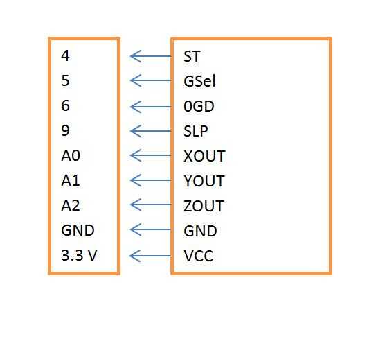 Construir el dispositivo consiste en soldar las conexiones del acelerómetro en el escudo GPS junto con las cabeceras por lo que se puede conectar al Arduino Uno. En la imagen de arriba se muestran las conexiones del acelerómetro. Para la conexión de Vref en el acelerómetro, los 3,3 V en el Arduino Uno fue conectado tanto el acelerómetro y Vref en el otro lado de la Arduino. Las salidas X, Y y Z del acelerómetro fueron conectadas a las entradas analógicas, 0, 1 y 2 respectivamente. El GPS escudo digital pines 8 y 7 están conectados como el TX y RX GPS salidas que pueden utilizarse para Mostrar datos serie suaves de salida, respectivamente.