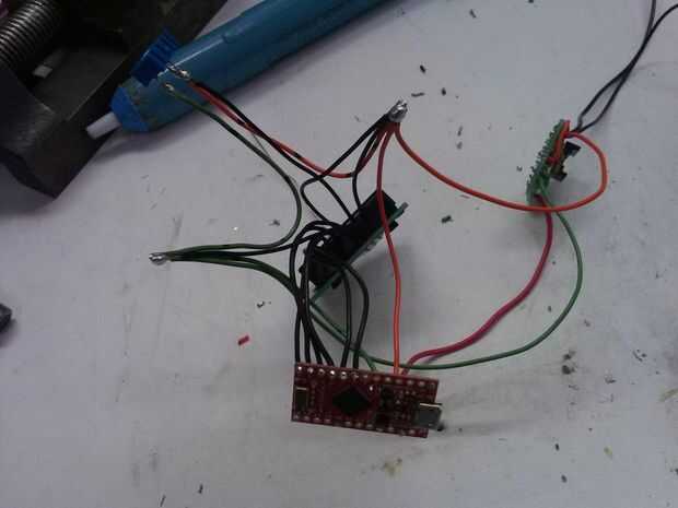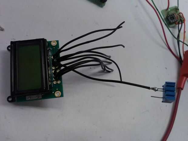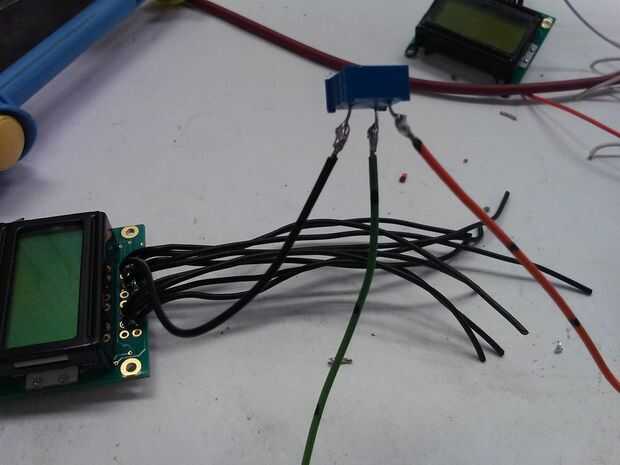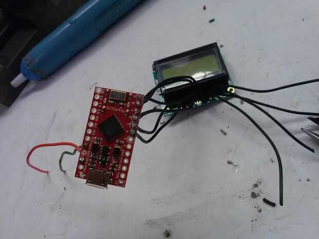 Después de todo el circuito era soldado, nos soldadas la pantalla LCD y el Arduino, así como el alambre de straided (que había pasado con el caso y fue unido al piezo moldeado) a la placa de circuito.