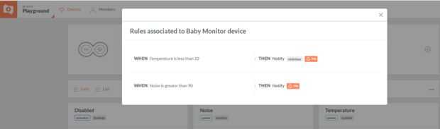 - Haga clic en el icono de pluma debajo del título. Se abrirá un popup con todas las reglas asociadas con este dispositivo