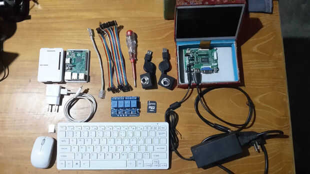 8. LCD monitor, conductor, cable HDMI y fuente de alimentación 12v