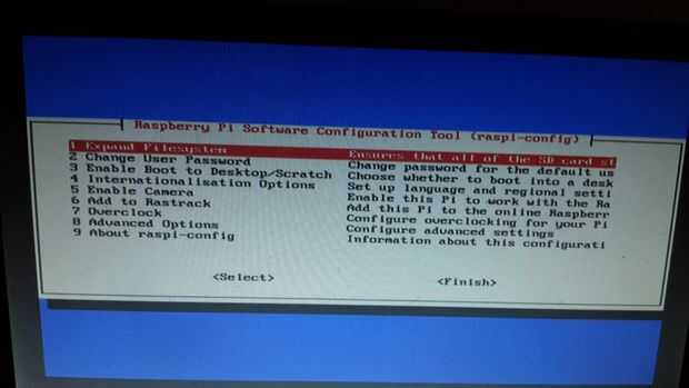2. Elegir el número 1 (ampliar Filesystem), presione entrar, luego elegir acabado, frambuesa se reiniciará