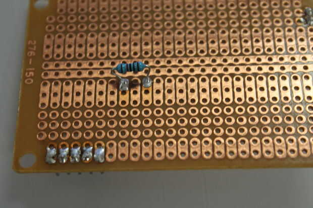 La resistencia conecta a las ranuras de conectores de 7 y 9, junto a A0 y A2.