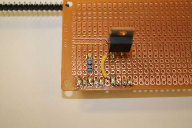 Instale el A0 a Mosfet pin 1 conexión (que es la puerta), usando el cable amarillo.