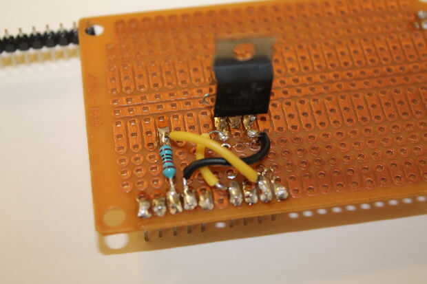 Instalar el Pin3 de lo Mosfet (que es la fuente), al pin 4 de los encabezados (que va a la tierra del Arduino)