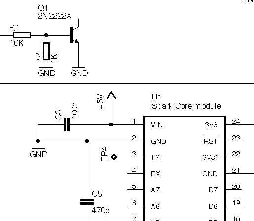 A continuación, necesitará montar el circuito en la placa de prototipos. El esquema está disponible como chispa-poder-metro-main.pdf (véase abajo) - puede ser útil para imprimir y marcar de componentes a medida que avanza.