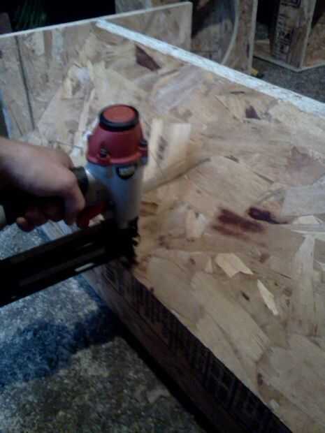 Podemos empezar por pegar y atornillar los lados largos de la caja, asegurándose de que los extremos queden al ras con la bloquea
