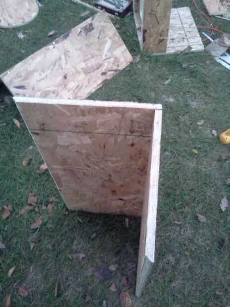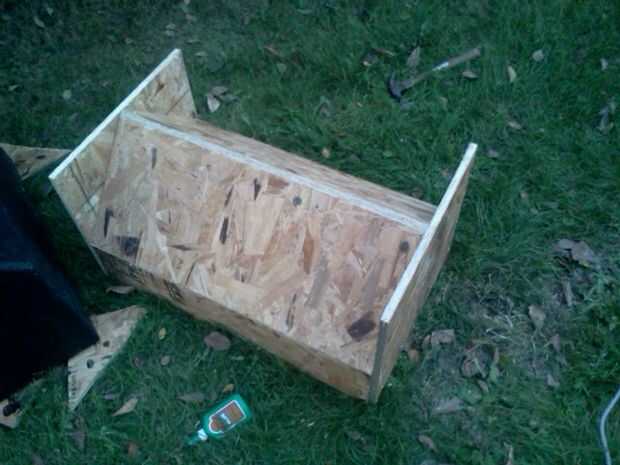 A continuación nos Atornille los dos extremos planos de los respaldos , dejando 45 ° abren ángulos para sentarse a ras con los lados de la caja.