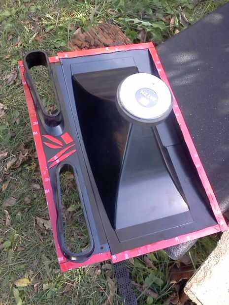 Usé cinta de doble montaje de cara en el cuerno y luego había jodido por dos razones una durabilidad y dos para cualquier zumbido residual de la vibración del altavoz.
