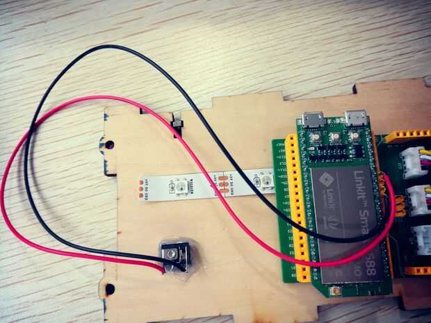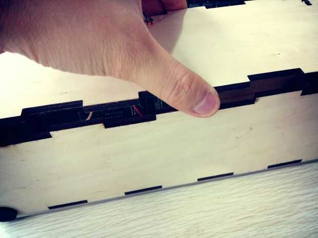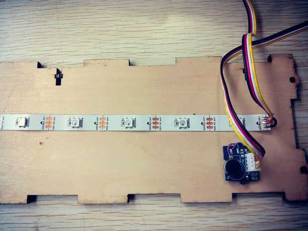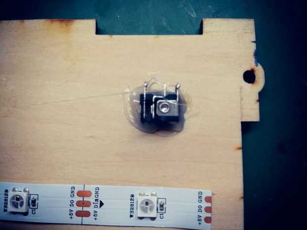 2. Montaje de Leds y Grove - vibraciones a la parte posterior de la caja. Necesita pistola encoladora o pegamento de 3M también.