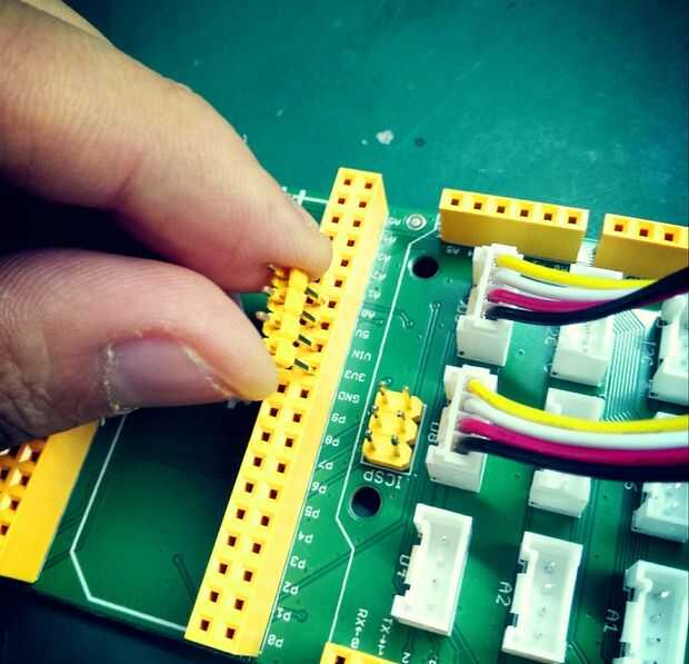 6. Enchufe LinkIt Smart 7688Duo en la Junta de arranque y luego conecte Breakout Junta en TFT pantalla táctil