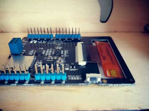 1. Conexión TFT Touch protector a la tapa de la caja, hay un agujero cuadrado, no se perderá. Y se necesita una pistola de pegamento aquí.