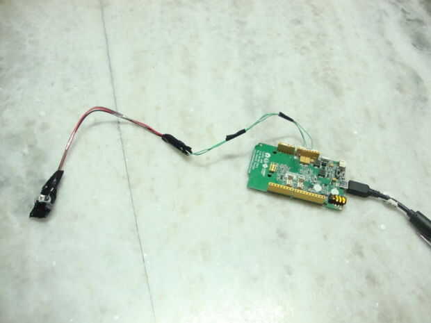 5. Por último añadir algunas cintas en los extremos sueltos del sensor así como el linkit uno.
