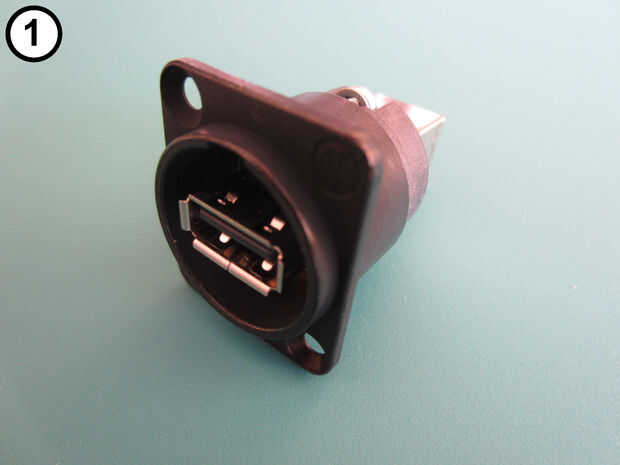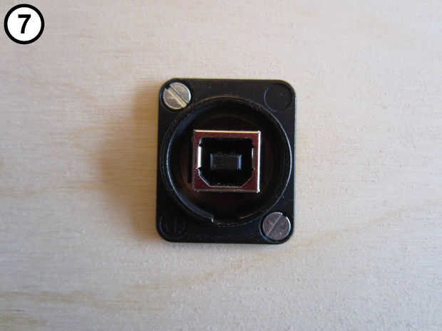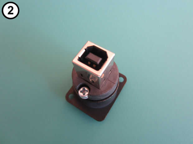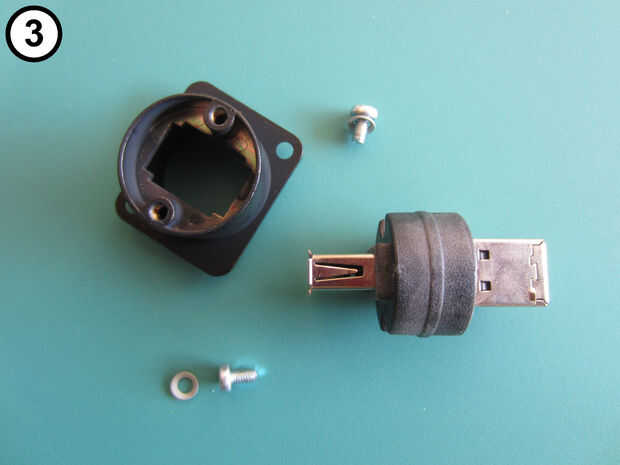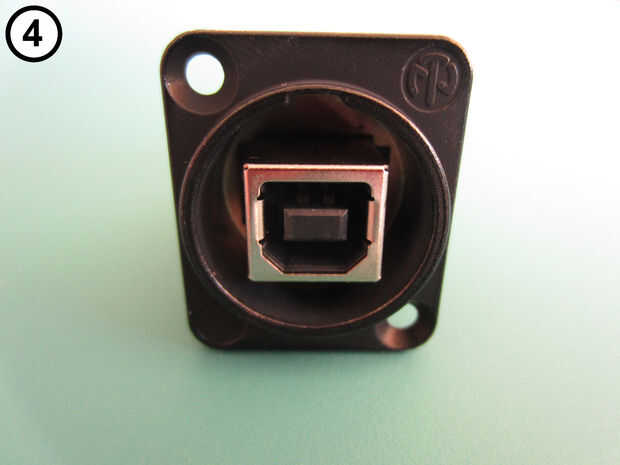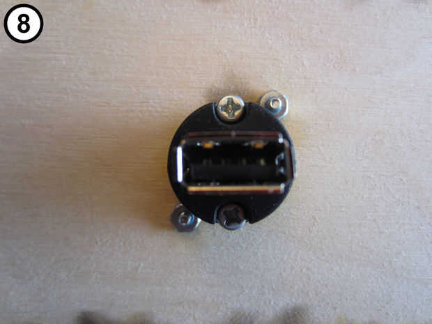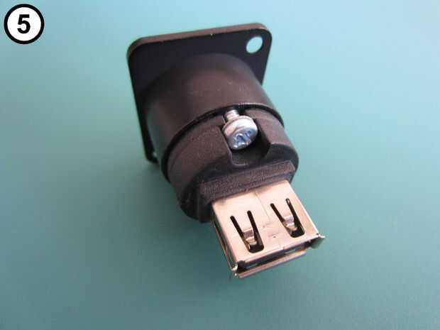 Vuelva a montar el cambiador de género USB con el conector tipo B hacia el exterior y el enchufe tipo A en el interior (fotos 4 y 5).