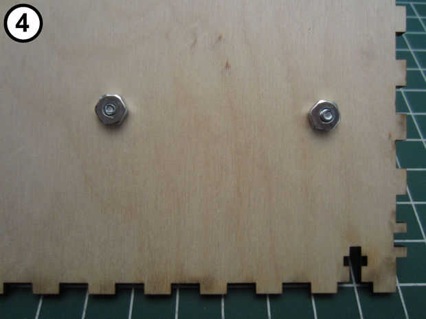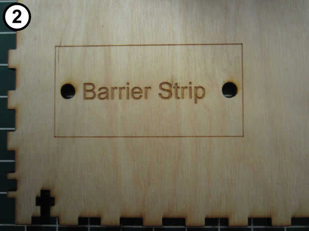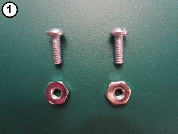 Utilice dos 1/2" #6-32 tornillos y tuercas (Foto 1) conectar la tira de barrera al panel inferior (Foto 2) como se muestra en las fotos 3 y 5.