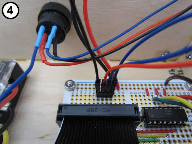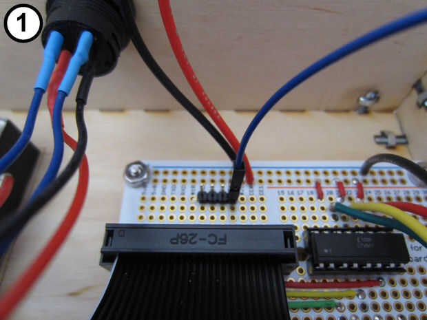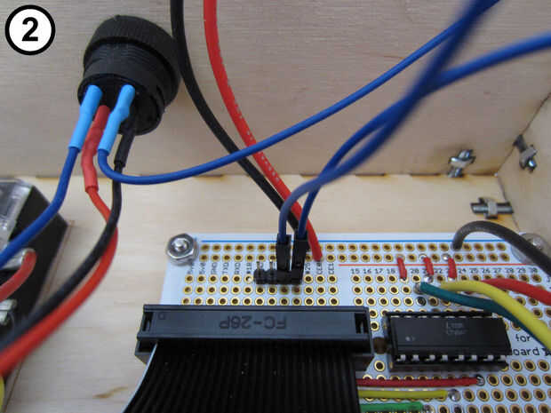 Conecte uno de los cables azules del interruptor de parada en la cabecera macho (Foto 1); no importa cuál de los dos cables azules que utilizas.
