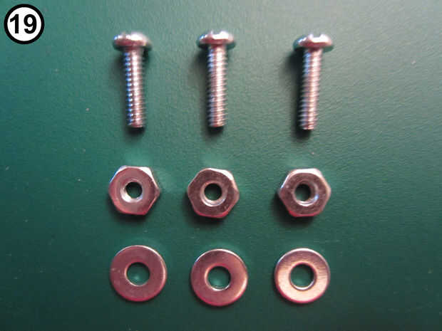 - 3 #6-32 1/2" tornillos, tuercas y arandelas (Foto 19) para el montaje de la lámpara de la torre
