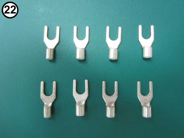 - 4 espada lengua terminales para cables de calibre de 16-22 (Radio Shack 64-3031 o Jameco parte núm. 842929) (foto 22)