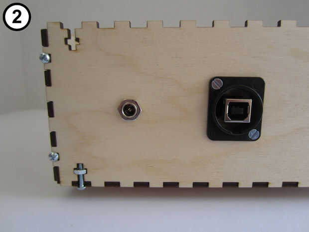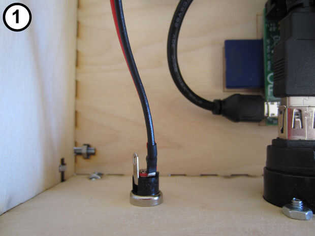 Destornille la tuerca de la toma de corriente, inserte al enchufe en el orificio en el panel lateral al lado del cambiador de género USB y fijar el panel con la tuerca (fotos 1 y 2).