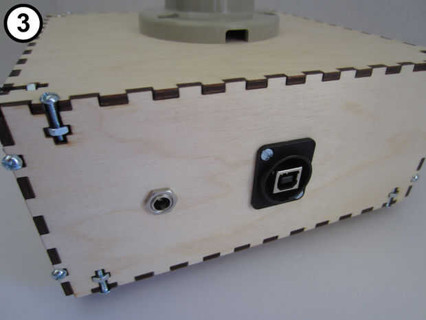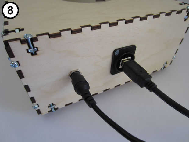 Conecte el extremo macho tipo B del cable USB a jack en el panel lateral de la caja (foto 6).