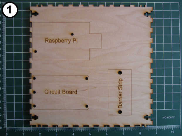 - Panel inferior con los agujeros de montaje para Raspberry Pi, circuitos y barrera (Foto 1)