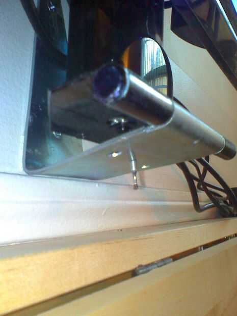 El moniotor perfecto para este trabajo es el VX2255 de ViewSonic de 22". Ha construido en cámara web y micrófono además de altavoces, lo que lo convierte en un gran monitor y justo para este proyecto. Estoy seguro que algunos otros funcionará tan bien. Antes de comprar un monitor sólo tienes que ir a un local tienda y echar un vistazo a las bases. Si utiliza tornillos que son buenos ir.