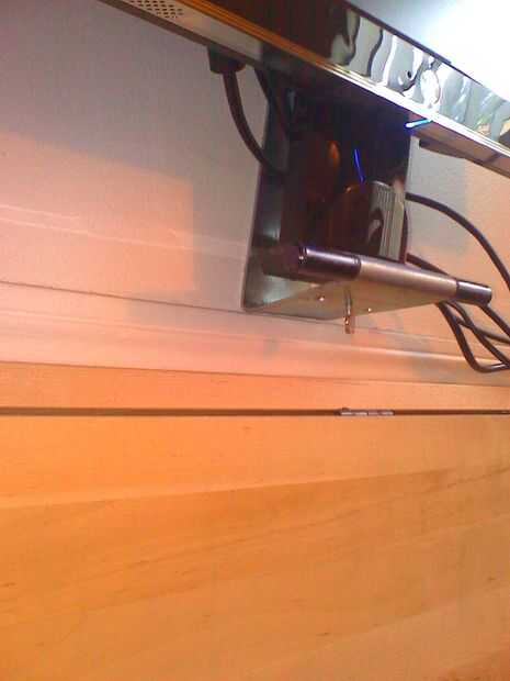 Paso 3: Grabación y asegurar al monitor en el brazo de la bisagra.