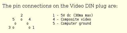 El monitor TRS-80 modelo 1 fue realmente un televisor RCA blanco y negro con la mayoría de las agallas de sacar. Porque el chasis fue conectado a la red eléctrica, Radio Shack añadido un aislador óptico para evitar choques. La salida de la TRS-80 era 5 voltios para alimentar el optoisolator y señal de vídeo compuesto estándar 2 voltios. Si usted quiere tener un monitor más grande, puede conectar un conector DIN de los pines 4 y 5 y conecta a la entrada de vídeo del televisor (o VCR o lo que sea).