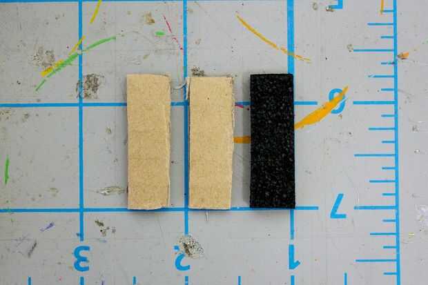 Añadir dos puntos de pegamento a extremos opuestos en la espuma conductora. Pegamento para el papel de aluminio - piezas de cartón