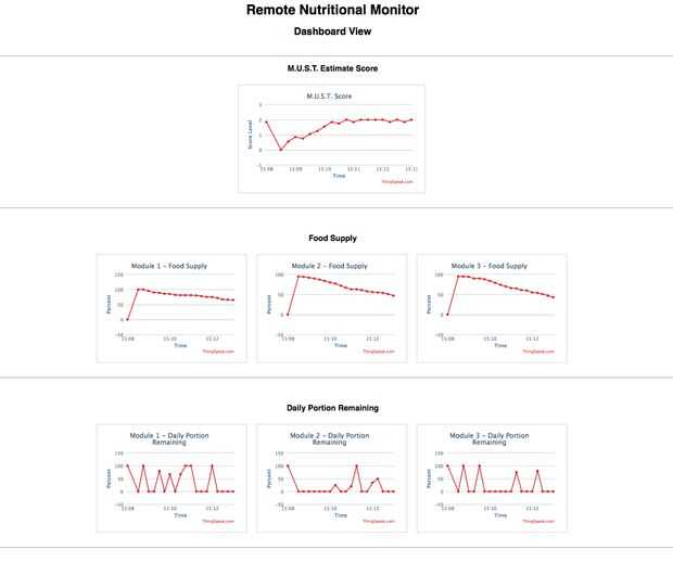 El tablero de mandos remoto permite una experiencia fácil ver la puntuación de los datos y la desnutrición, todo en un solo lugar, accesible desde cualquier lugar. Los datos de la aplicación se cargan en un sitio web llamado ThingSpeak. Esto es donde usted puede acceder a los gráficos.