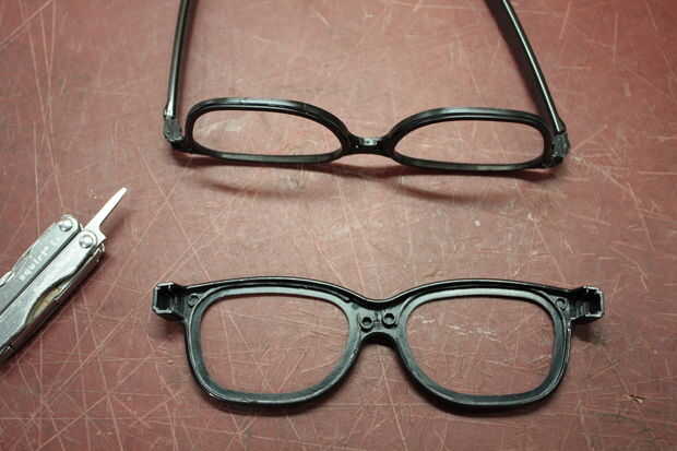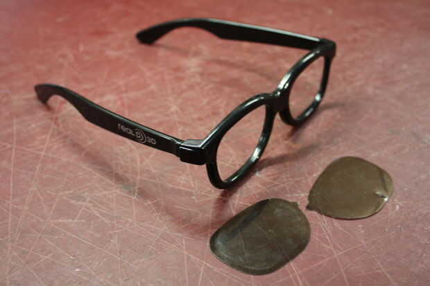 Para las gafas, he utilizado gafas 3D solo uso de la sala de cine, pero puede usar lo que quieras. Extraiga las lentes o desmontar los vidrios si es posible.