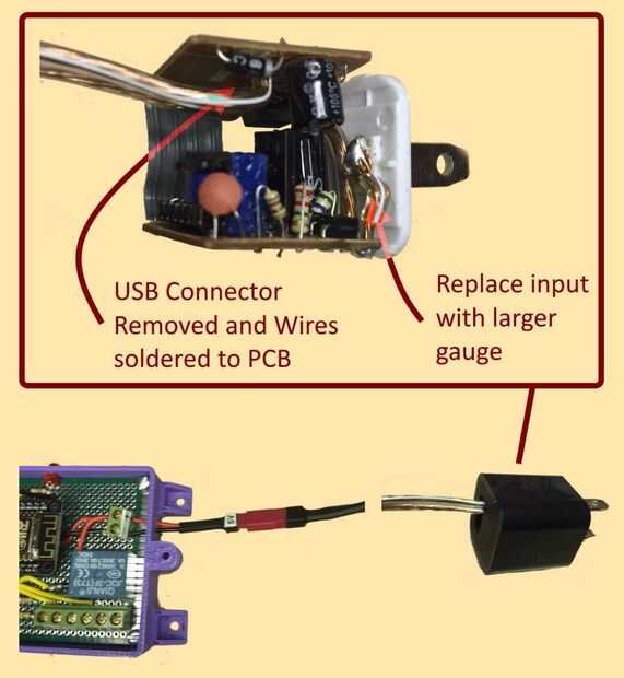 En este caso, un cable de 2 conductores se ejecutó desde el tablero de la fuente de alimentación a la placa de circuito. Puede utilizar un cable USB por supuesto.