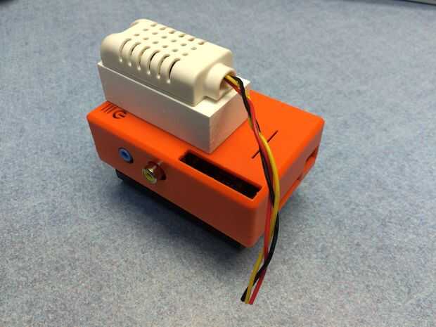 Enchufe el conector en el GPIO en la Raspberry Pi así pin 1 del conector (cable rojo) es el pin 1 del conector GPIO (etiqueta P1 en el tablero, arriba a la derecha en la foto). Tenga en cuenta que el cable rojo es el GPIO Pin 1 (+ 3.3V), el cable amarillo es de pin GPIO 7 (GPIO 4) y el cable negro es el GPIO Pin 9 (tierra).