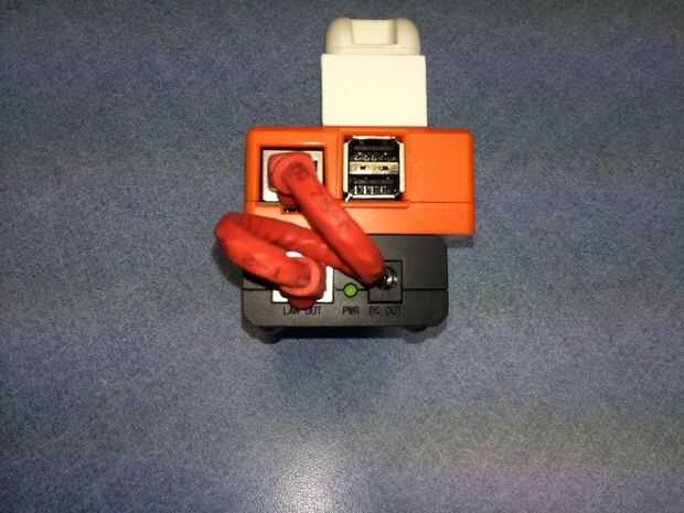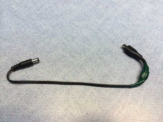 Tomar el cable de salida del PoE y un conector Micro-USB o cable y soldarlos juntos. Si utiliza un conector de Micro-USB de http://www.adafruit.com/products/1390 de AdaFruit, elctronico para arriba como se muestra en el http://learn.adafruit.com/assets/12402, si mediante un cable de corte, determinar + 5 y Gnd los cables con un multímetro. Tenga en cuenta que el cable TP-Link con la raya blanca es positivo.