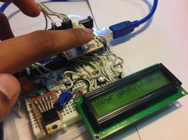 He construido un circuito de monitor de ritmo cardíaco relativamente simple que es supervisado y controlado por un Arduino Uno. La teoría de operación está basado en el hecho de que la luz infrarroja (IR) es parcialmente absorbida por la sangre. Cuan