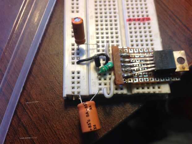 Los reguladores de conmutación son mucho más eficientes. El LM 2575 5 voltios regulador de conmutación es dice que 80-90% de eficiencia. Por lo tanto para cargar el powerbank con un panel solar, vamos a utilizar un LM2575 basado circuito cargador.