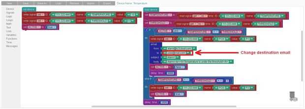 La lógica es bastante simple. El dispositivo de nube leerá la temperatura y el umbral y se le enviará un correo electrónico si la temperatura pasa por debajo del umbral. La señal de umbral se establece por la aplicación móvil que va a crear en el paso siguiente.