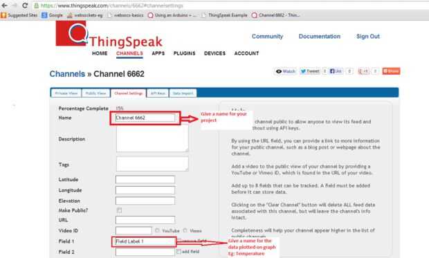 • Dar un nombre para su proyecto y llenar la columna del campo con la información que está tramando. , Por ejemplo: temperatura.