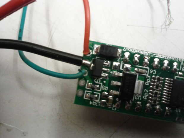 Tira el cable hacia unos 5 mm. quitar el negro del cable en la pantalla LED y suelde el cable negro (del cable rojo/negro) el mismo punto en la pantalla LED.