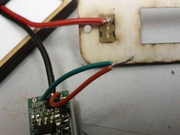 El cable rojo de la pantalla LED es la fuente de alimentación y el cable verde es el voltaje de control de alambre - en este caso son la misma cosa, conéctelos y cable al interruptor.