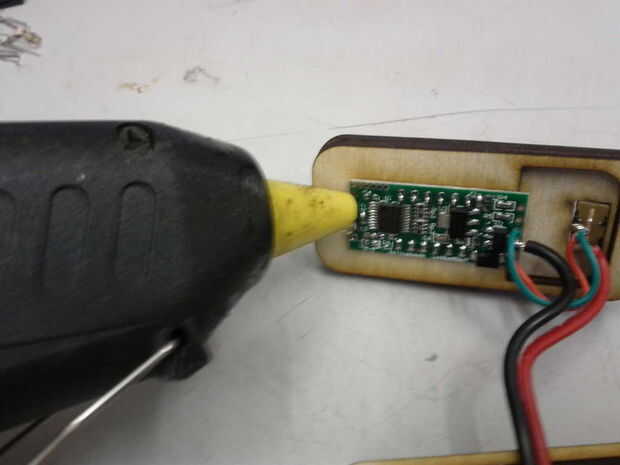Aplique pegamento caliente del derretimiento para sostener la pantalla en su lugar. Asegúrese de que no es mucho pegamento se utiliza como podría parar la unidad de cierre correctamente.