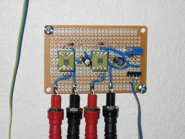 El principal componente en el circuito es un Instrumentación analógica dispositivos AD8220 op-amp. Esta parte sólo viene en el empaquetado de estilo de montaje en superficie. Necesitaba utilizar una pequeña inmersión en SMT adaptador de junta para mi circuito. No sentir es necesario utilizar la parte exacta de la misma. Cualquier amplificador operacional rail-to-rail instrumentación funcionará muy bien. Por ejemplo, el AD627 (Analog Devices) funcionará también y viene en un paquete amigable de inmersión protoboard. En mi circuito, usé una resistencia k 16 para lograr una ganancia de 4. No dude en utilizar una resistencia diferentes para llegar a una ganancia particular que necesita. Sin embargo, cualquier cambio en la ganancia debe compensarse en el JavaScript de la Página Web.