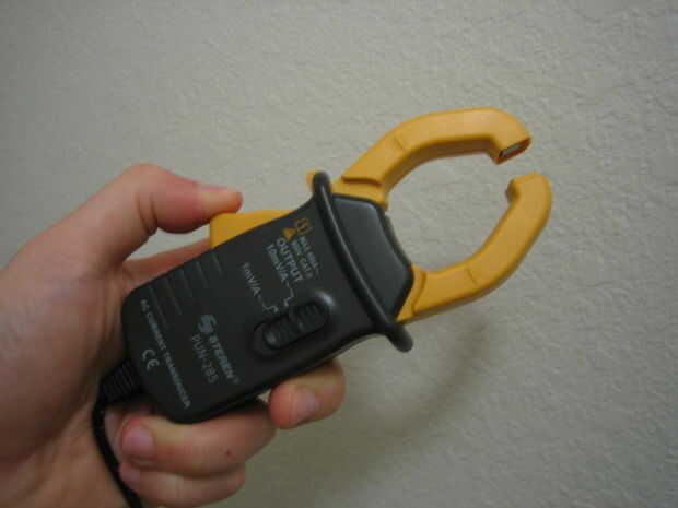 El potenciómetro se utiliza para la calibración de offset. Utilicé un bote de vuelta 15 para la mayor exactitud posible. Para calibrar, potencia el circuito, asegúrese de que la abrazadera de la CA no es cualquier cable y medir la salida de voltaje del circuito.